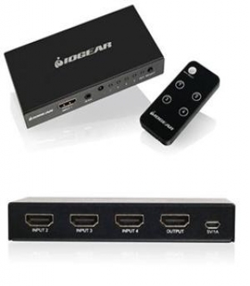 Iogear 4-port (4-in 1-Out) Audio/ Video HDMI Switch w/ Remote - GHDSW4K4