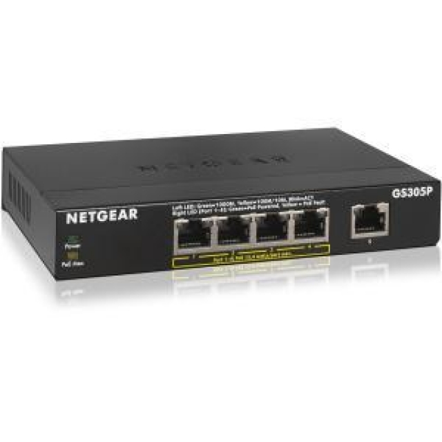 - 5-Port PoE Gigabit Ethernet Unmanaged Switch with 4-port PoE (GS305P)