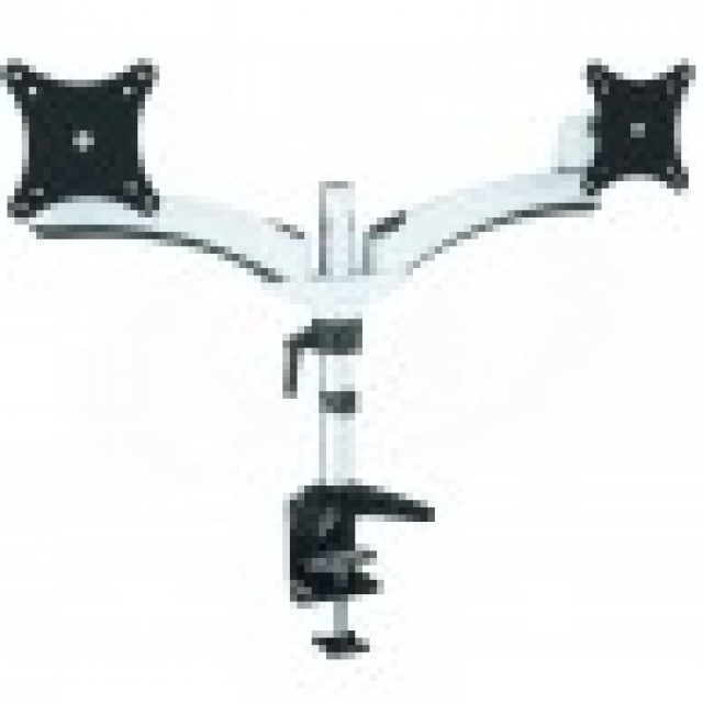 This quality LCD arm bracket is ideal for mounting two LCD TVs or monitors to a desk. Using a base, this adjustable arm fits securely and safely to your desk. Installing this arm easily with just clamping the base on the table edge.