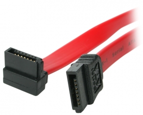 The right angle SATA cable features a standard (straight) female Serial ATA connector as well as a right-angled (female) SATA connector, providing a simple 12-inch connection to a Serial ATA drive, even if space near the drive SATA port is limited.